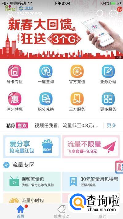 首先去应用商店下 中国移动掌上营业厅 (软件名字每个地区有所不同)
