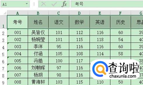 冻结行又分为冻结首行和前两行两种情况,我们先来看看如何冻结首行,比如图一就是一张学生成绩表,想要冻结第一行应该如何操作呢?