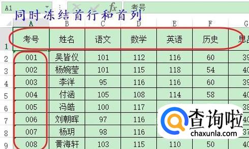 最后还有一种情况,那就是我们需要同时冻结行和列,比如同时冻结下图中的首行和首列;