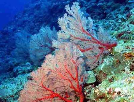 珊瑚是珊瑚虫的分泌物,主要成分是碳酸钙。它是一种海生圆筒状腔肠动物,在白色幼虫阶段便自动固定在先辈珊瑚的石灰质遗骨堆上,并群集相互粘在一起呈树枝状,即人们所说的珊瑚石。