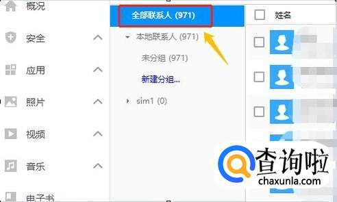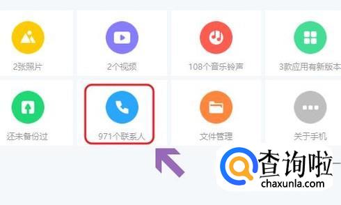 接着我们通过数据线将手机和电脑连接起来,在电脑端首页中间即可看到“联系人”选项了;