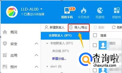 点击之后系统会显示目前手机里现有联系人列表,同时页面的上方会有一项“导入/导出”选项;