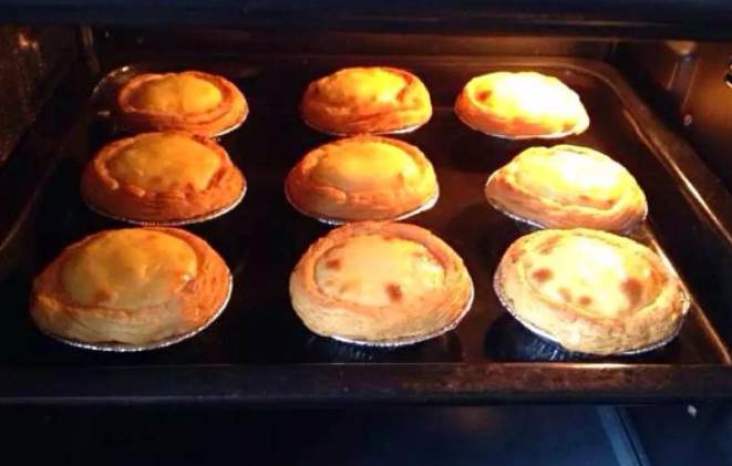 4.烘烤蛋挞之前要对烤箱提前预热。另外,烘烤的时候要把蛋挞坯放在中间层,这样蛋挞才会均匀受热。