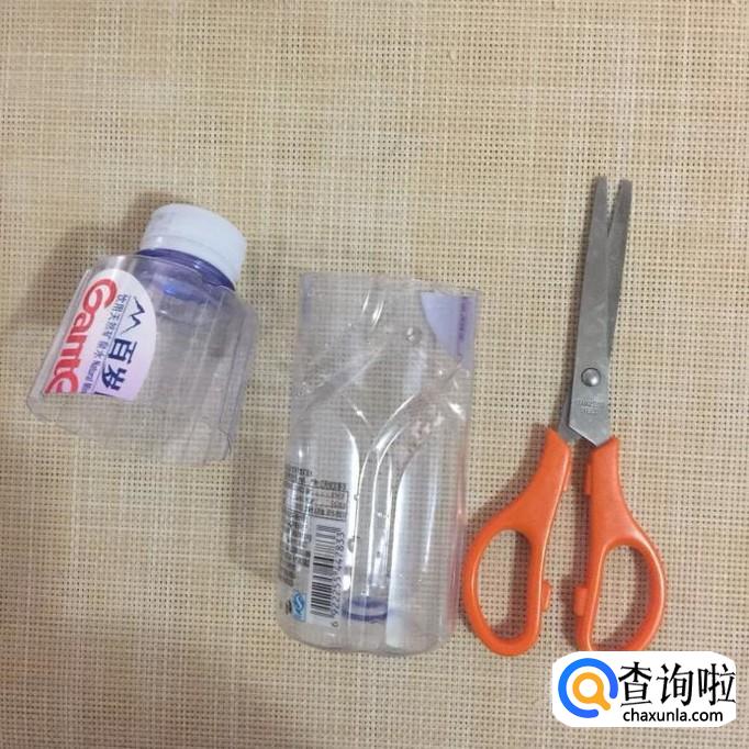 首先用剪刀将矿泉水瓶对半剪开,如下图所示。