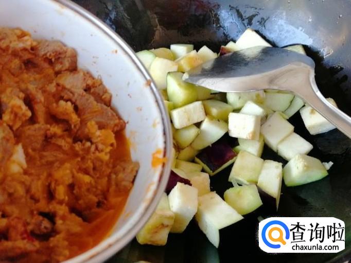把茄子翻炒均匀,关火加入适量食盐,喜欢味精的加入适量味精,翻炒均匀,好吃又好看的,茄子炖肉就做好了,出锅入盘,喜欢香菜和青葱的,可以最后撒上点绿色做点缀,剩下的时间开始享受美味吧!