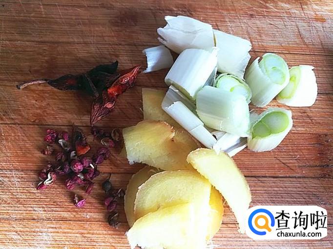 准备好适量的葱、生姜、花椒、八角备用。