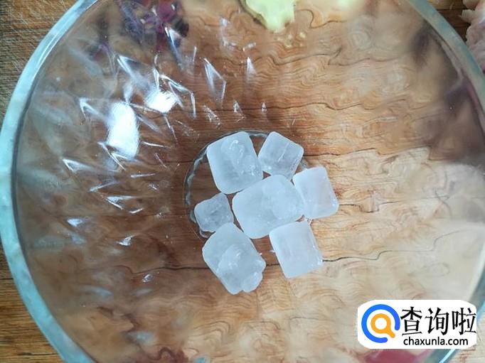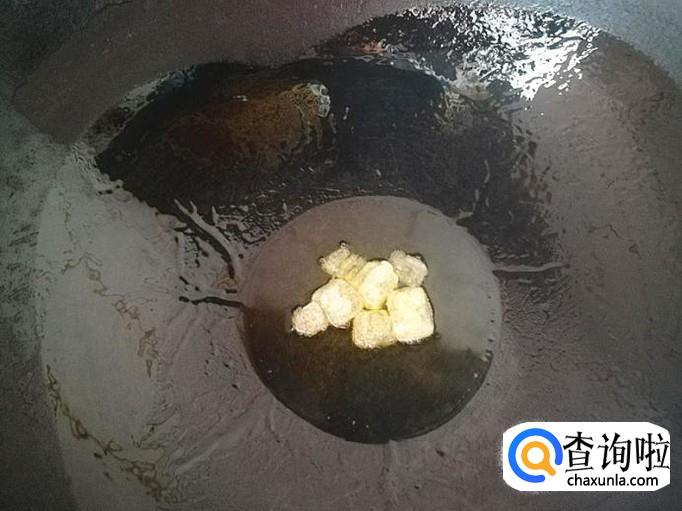 上炒菜锅,加入适量的植物油烧热,倒入准备好的冰糖炒至变黄沫。