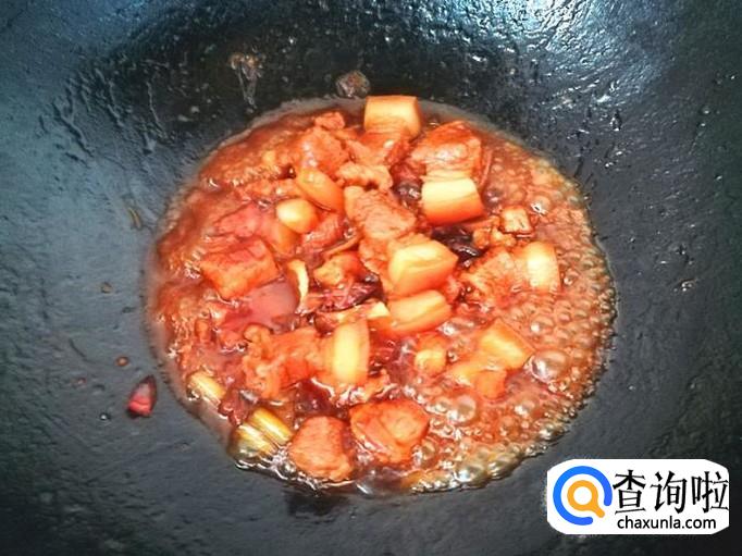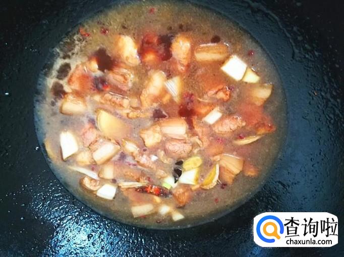加入适量的清水,最好是没过肉块为好。继续用中小为开始烧煮入味。