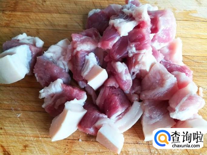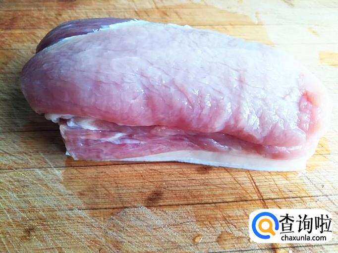 取适量的五花肉洗净,切成如下的块备用。