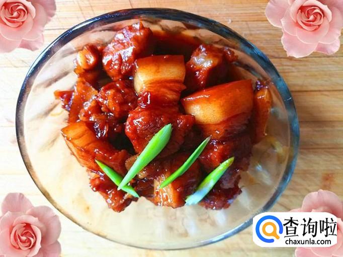 装盘,在上面切几条葱叶放最上面,就更加的诱人了,一盘香而不腻的好吃私房红烧肉就做好了。