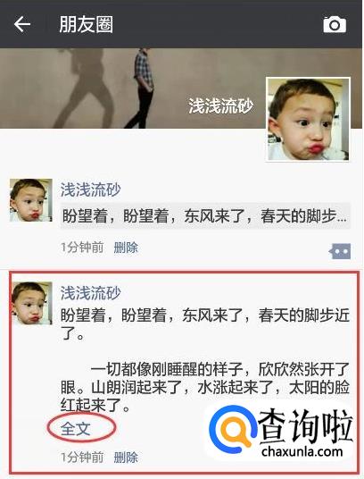 微信朋友圈中,文字超过6行,且总字数少于99个字时,显示前6行,后续内容折叠,需要点击“全文”才能完整显示内容。