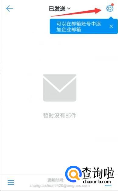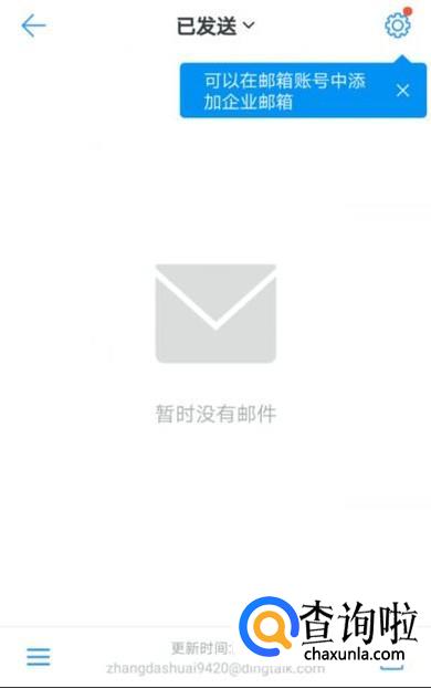 点击右上角的设置按钮可以再邮箱帐号中添加企业邮箱,这是钉钉邮箱的一大特色,添加了邮箱之后,既可以接收自己的私人信件,也可以关注公司信件,简直是一举两得!