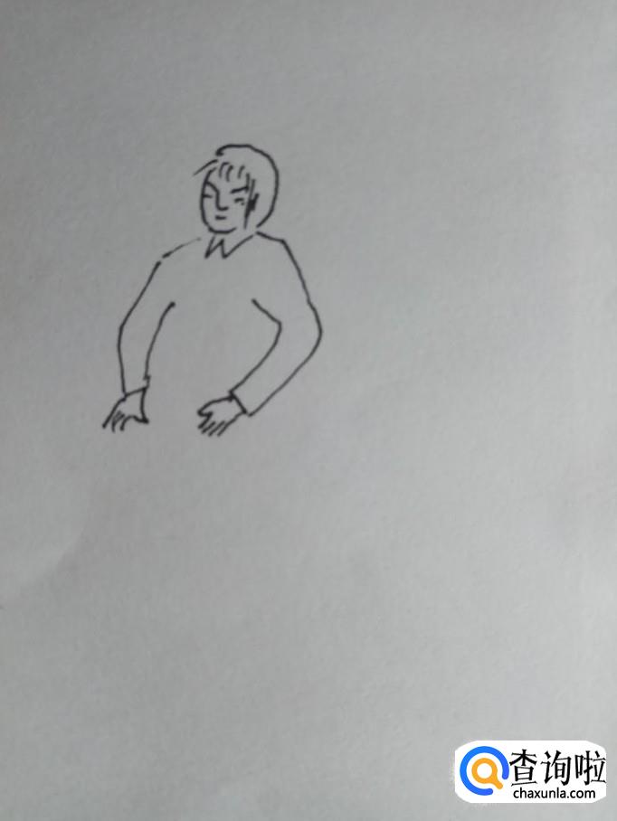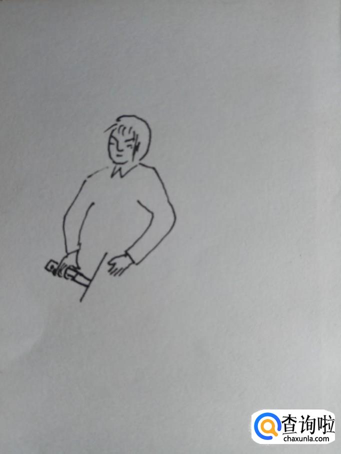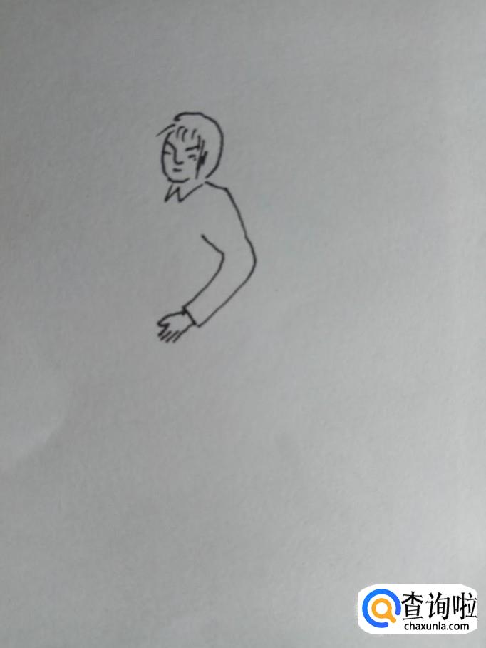 在白纸上画出手工裁纸人的另外一只胳膊和左边的胳膊是大体对称的,位置略微低一些,毕竟是立体图形。