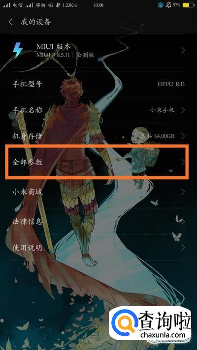 以小米手机为例(本截图是为针对王者荣耀对其他机型反优化修改过型号的),打开手机设置,找到"我的设备",进入"全部参数",就可找到IMEI信息。