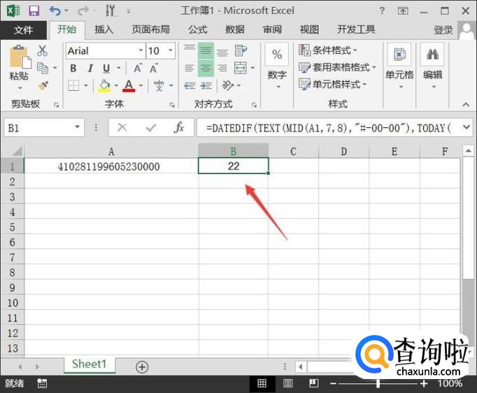 输入好函数之后我们按下回车键,可以看到在单元格内就计算出了年龄,如图所示: