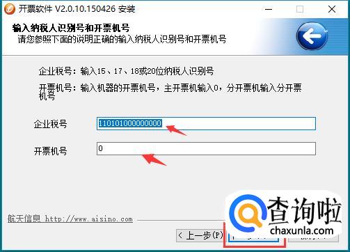 设置基本参数:营业地址、电话号码、银行账号等(中间不能敲空格和回车键),输入完成单击【下一步】。