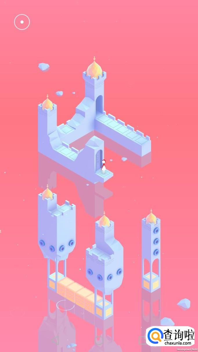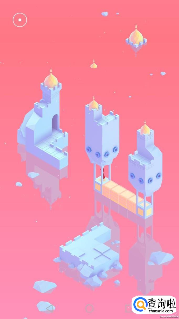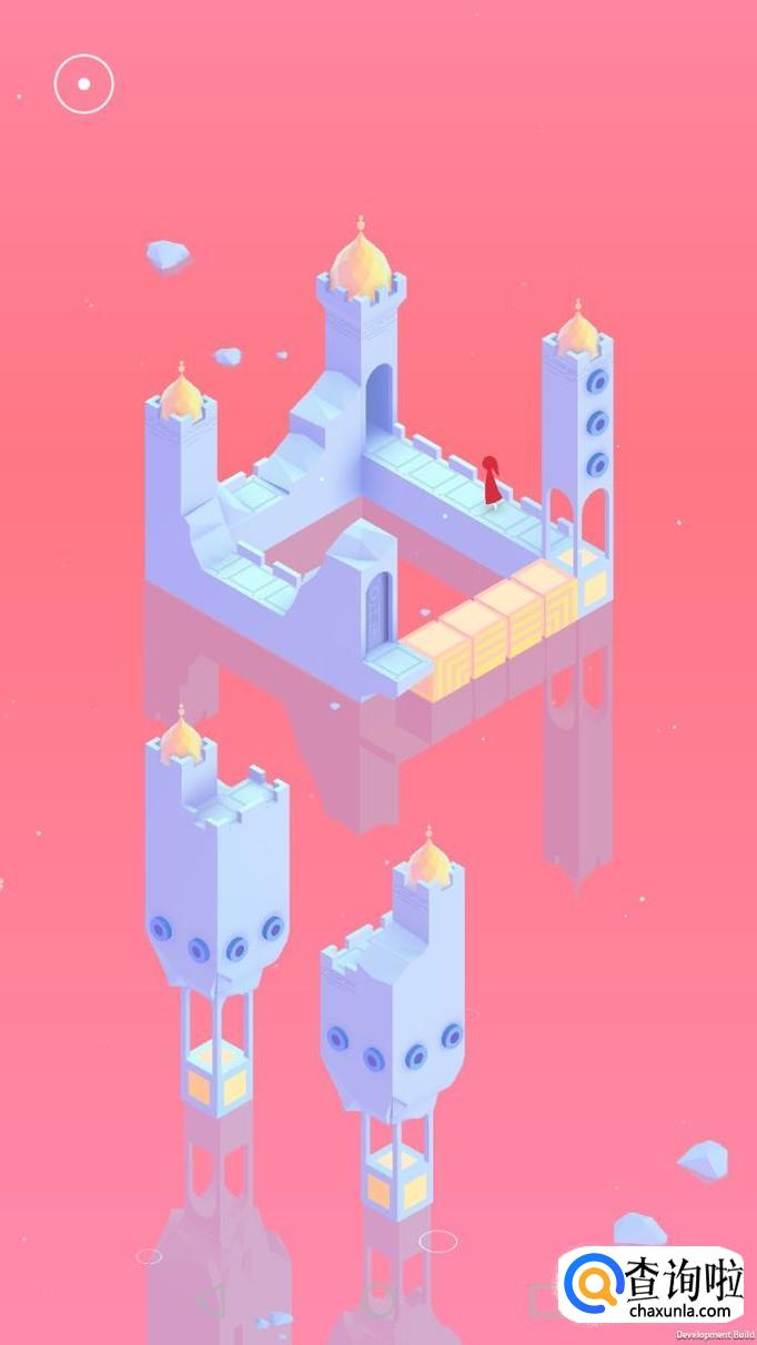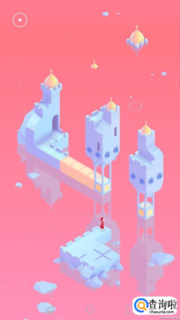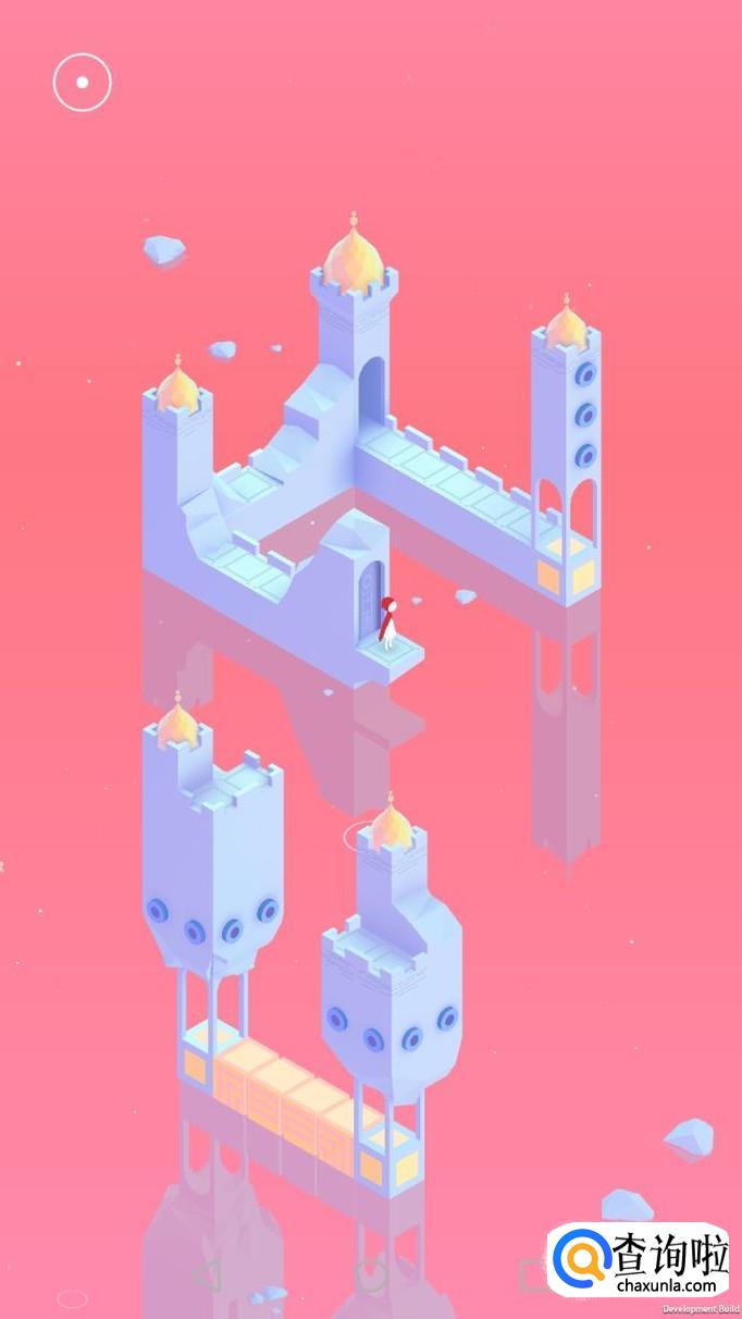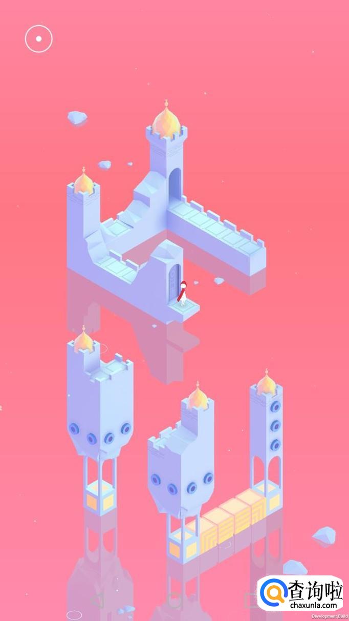 先把中间的机关向屏幕右转90度,使主角走到中间的机关上,再把中间的机关转回原处,使主角走到下面的机关上,下面的机关向左转90度,向前踩蓝绿色的机关点。