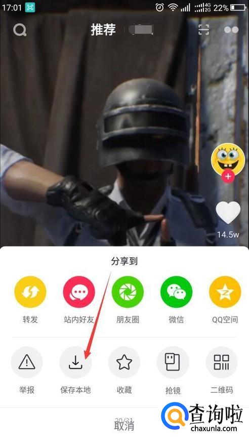 首先,打开抖音,点击右下角的分享按钮,点击保存本地,将视频下载到手机里。