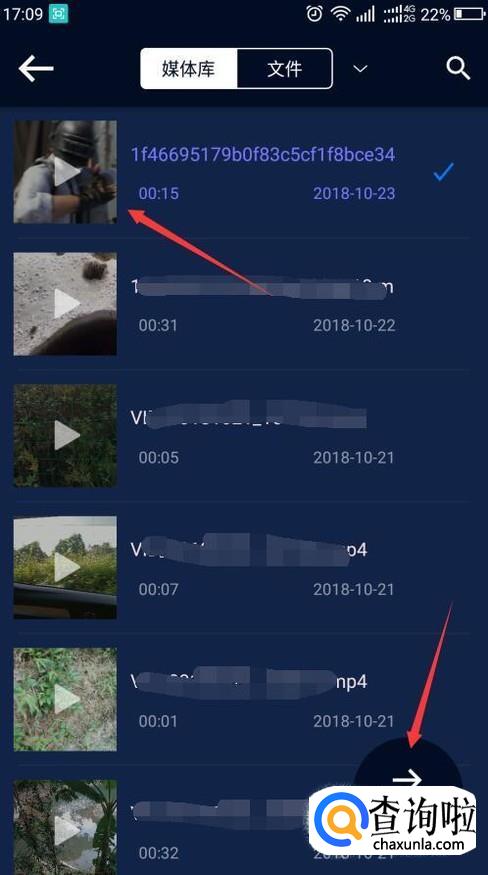 在出现的视频中选择刚才下载的视频,点击右下角的下一步。