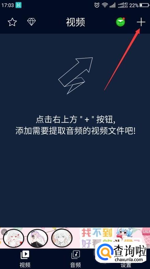 在手机里下载个音频提取器,然后打开音频提取器,点击右上角的+按钮。