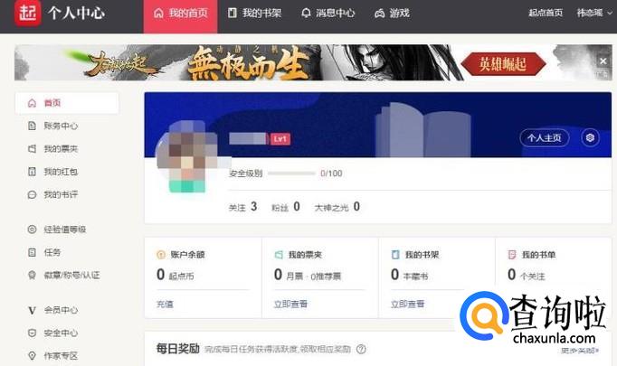登录后,点击个个昵称处进入“个人中心”,点击左边的“作家专区”进入,进入后点击登录作家专区。