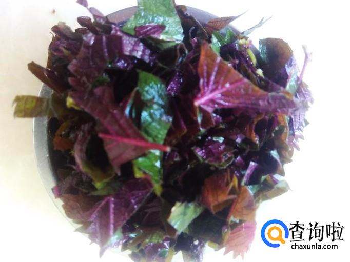 把紫苏叶摘下来,然后清洗干净,切成丝。