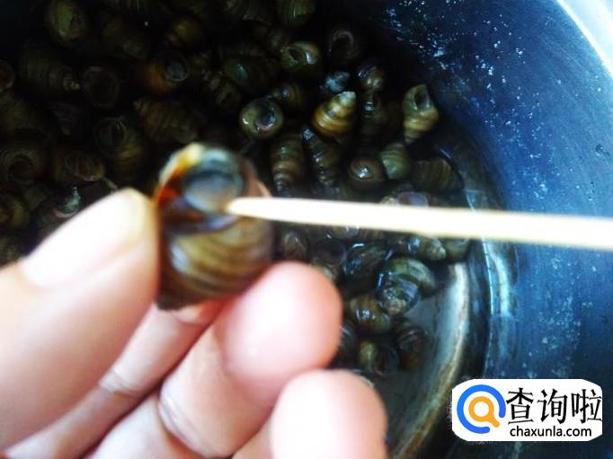拿出来过一下冷水,然后用牙签把田螺肉挑出来。