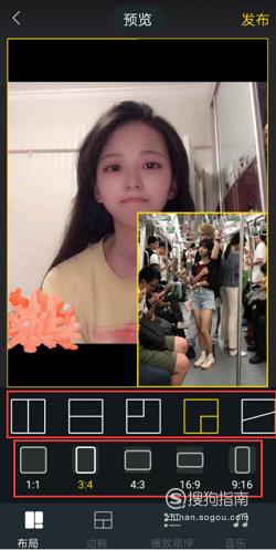 进入预览页面后,在布局模块中,可以进行对多格视频的比例和尺寸进行设置。