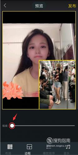 点击屏幕下方的“边框”,可以通过移动横线上的白色标点对边框的粗细进行设置。