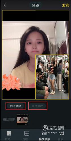 点击“边框”旁的“播放顺序”,进入播放顺序设置页面,可以设置不同视频是否同时播放或先后播放顺序。