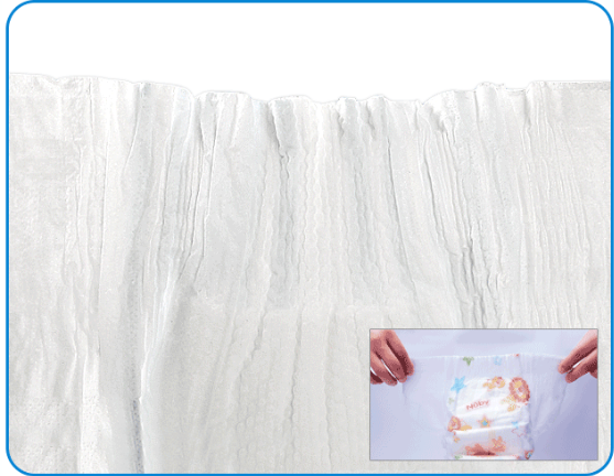 尿不湿内部有吸芯层,这物质够俘获并快速吸收尿液、分散尿液或能通过毛细作用把它扩散到整个芯层中、最终吸收并储存尿液。
