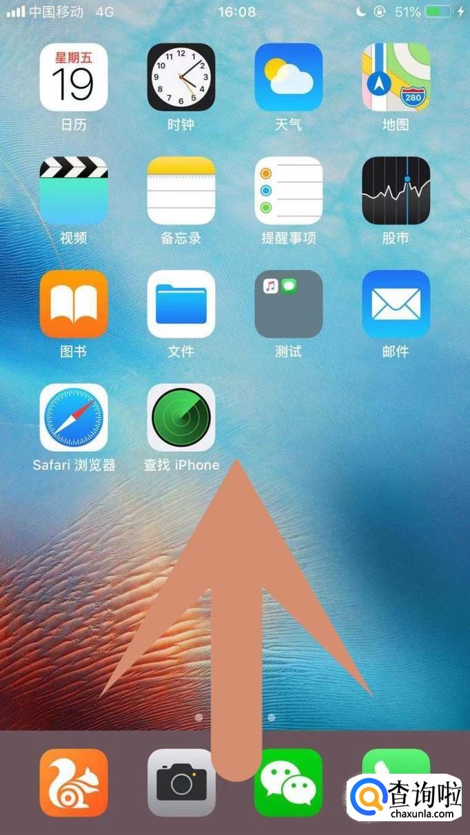 首先将我们的手机主屏幕往上滑动,如下图所示。