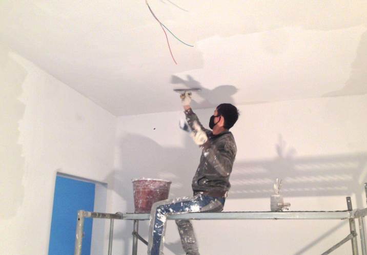在进行墙面找平之前,我们需要先看下墙面是否有空鼓情况,可敲击墙面,听声音来判断,然后将强民凹凸不平的地方用石膏进行找平。
