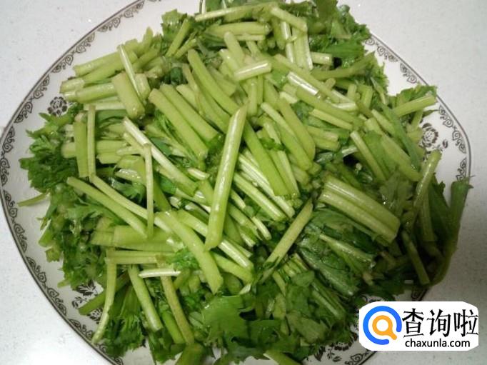 茼蒿收拾清洗干净,控干水分,切成寸段。