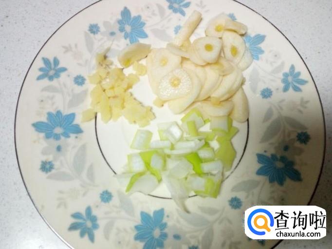 切好葱,姜,蒜,备用。