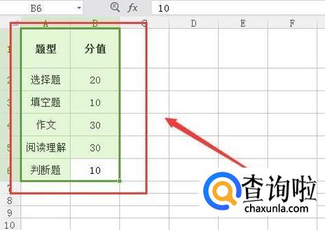 选择需要制作饼状图的区域。