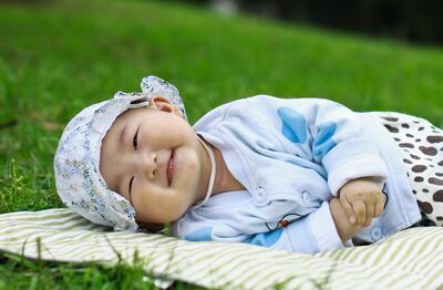 22、肥嘟嘟的小脸蛋,半米的眼睛,时而傻呵呵的笑着,时而吮吸着自己的小手指。