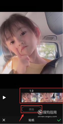 进入新的页面后,通过拖动进度条找到需要添加贴纸的画面,点击“添加”。