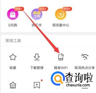 进入之后,在“我的”页面,点击“随身WiFi”,进入下一页面,如图所示。