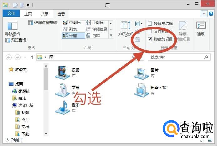 勾选隐藏的项目,如果需要取消显示隐藏,取消勾选“隐藏的项目”即可。