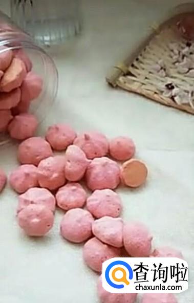 最后倒入火龙果泥,搅拌,装入裱花袋,在烤盘上挤出形状,设置好时间温度,100度热风,40-50分钟左右,等待香喷喷溶豆出炉就OK了。