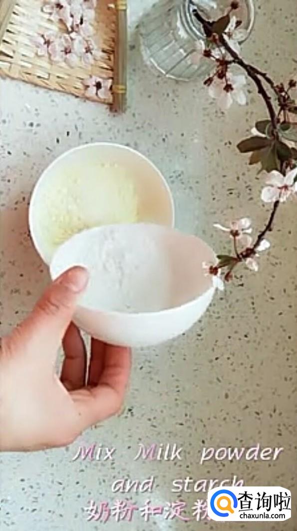 接着把奶粉和淀粉混合均匀