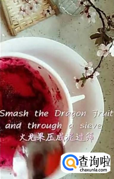 将所需的火龙果压成泥,过筛,分开火龙果汁,火龙果泥备用
