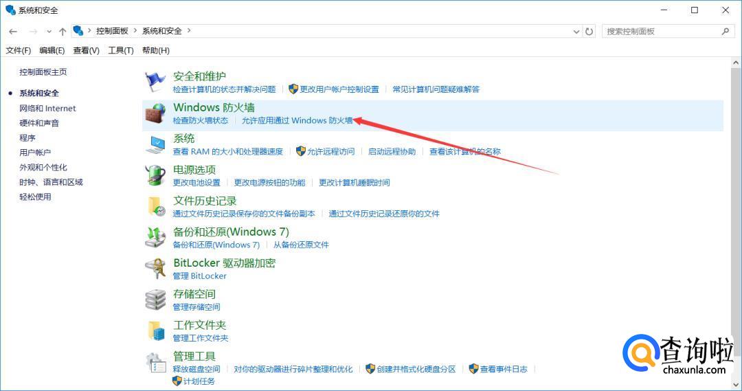 然后在【系统和安全】中找到【Windows防火墙】打开。