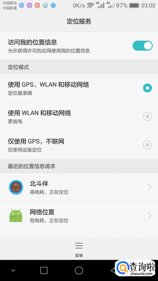 打开之后,我们打开“开启位置服务”的开关,把“定位模式”设置为“高精确度”。