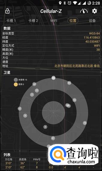 滑动页面,如果手机是可以连接“北斗卫星的”,就会有“北斗”的连接数据,没有的就不支持连接“北斗卫星”。