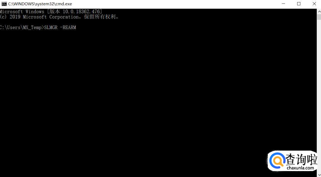 进入命令行界面,输入“ SLMGR -REARM ”命令,点击回车。