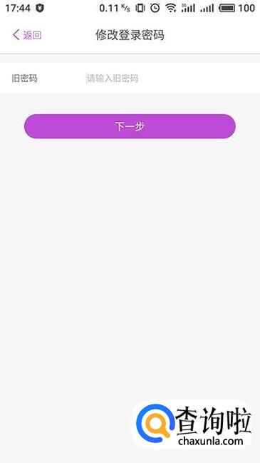 进入修改登录密码界面,输入之前的旧密码,点击“下一步”