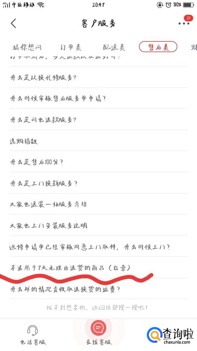 也可以查询关于商品七日无理由退换货的相关问题,如下图。