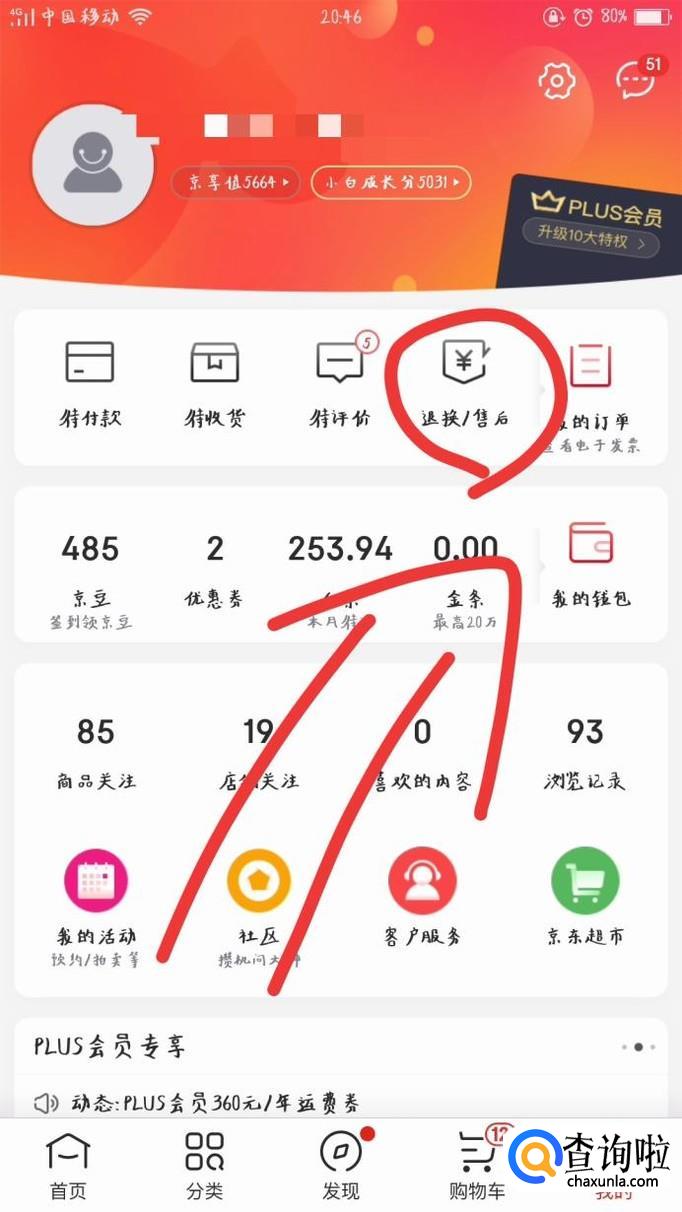 如果已经购买了商品但是想要退货时,可以在个人账号信息界面点击“退换/售后”。